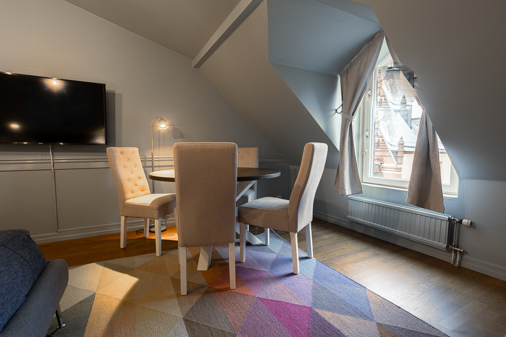 Våra största dubbelrum erbjuder mer utrymme, rummen har en sittgrupp, stort badrum och en bäddsoffa som gör det möjligt att sova upp till fyra personer (tilläggsavgift). Alla rum har en stor LCD-TV med premiumkanaler och möjlighet att casta ditt eget innehåll. Det finns även skrivbord och hårtork, snabbt wifi finns i hela byggnaden. Kaffe och te är alltid gratis för dig som gäst i lobbyn och frukostbuffé ingår alltid i rumspriset.